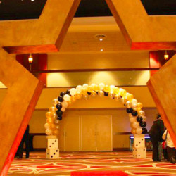 Ballon arches add to a fun and festive casino decor for your casino night events. Decorative arches can be customized to match any color scheme, and add a lively decorative entryway to the nights events. Whether it is a luxurious and classic affair, or bright and cheerful party, we can accommodate any style.
