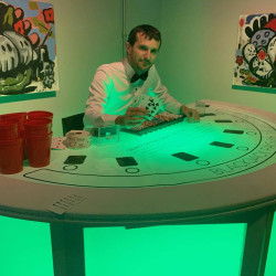 Hit you’re guests with a great time at your casino event! Our fabulous Blackjack tables are sure to keep them from splitting the party early. Combined with our entertaining dealers, these tables will keep your guests engaged all night. Ask about a Blackjack table for your event today!